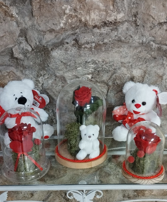 Podemos adjuntar a esta Cúpula con Rosa Preservada, diversos complementos que tenemos en nuestra floristería online, a su completa disposición: jarrones, peluches, bombones, vino o champang, globos, tarjetas … o cualquier otro detalle que se le ocurra. Consúltenos, si así lo desea, sin ningún compromiso. Le ayudaremos en todo lo que nos sea posible.